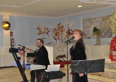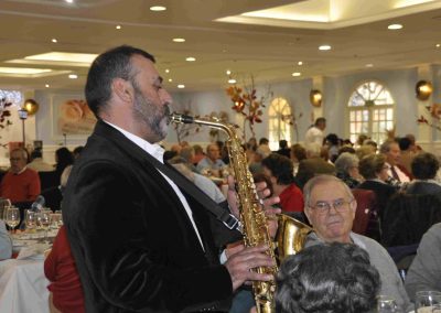 A todos los asistentes se les obsequió con un pequeño detalle y a los postres Juanmi Silva, con su saxofón y su vocalista nos deleitó con un variado repertorio de canciones.