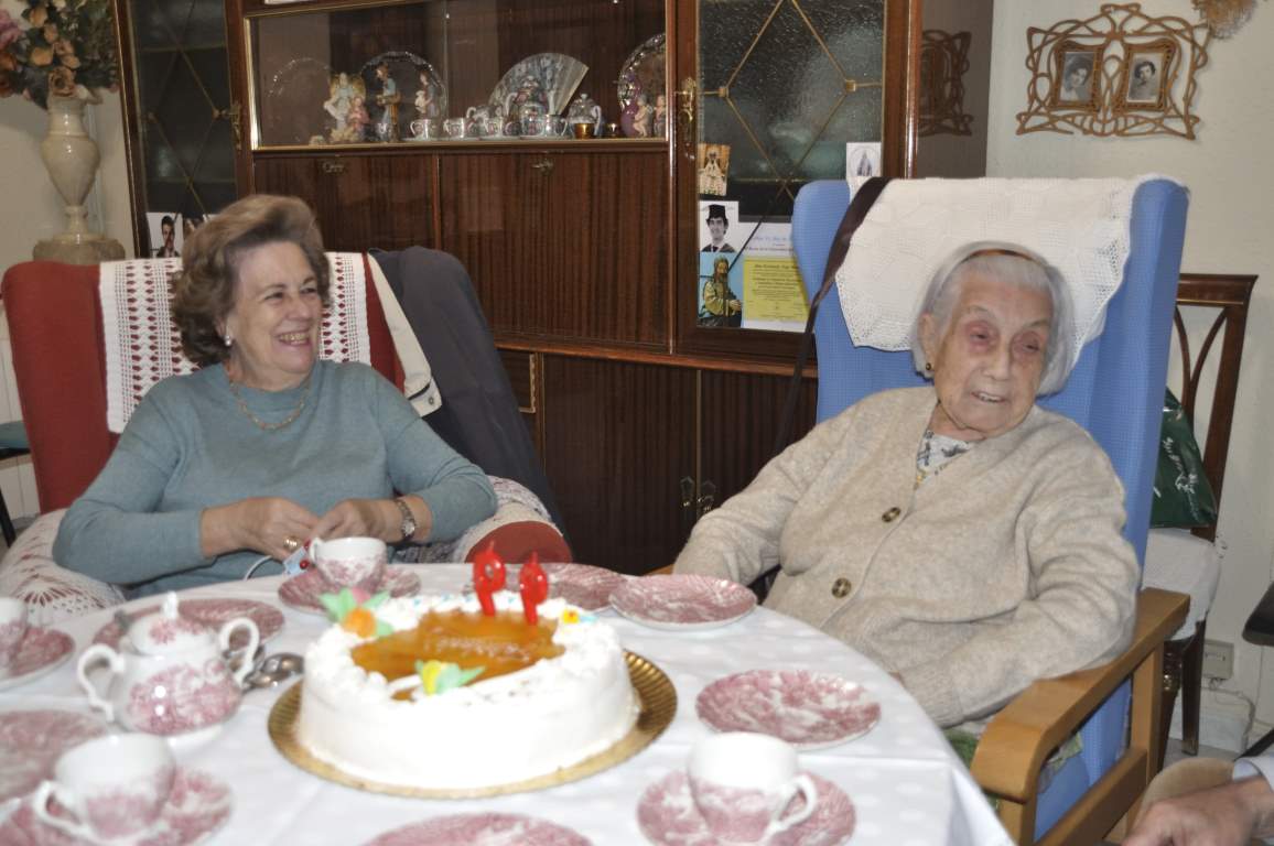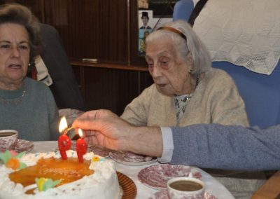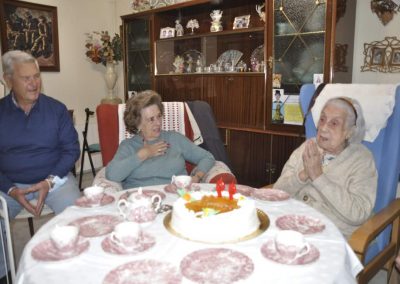 A lo largo de nuestra visita, nuestra cumpleañera sopló las velas de la tarta que le regalamos y no paró de departir con todos y contar, con su especial gracejo, vivencias de hace muchísimos años.