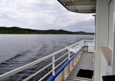 Salimos de Badajoz a las 08:30 h. con dirección al Pantano del Alqueva, haciendo un alto en el camino para desayunar y recoger a nuestro guía en Villanueva del Fresno.