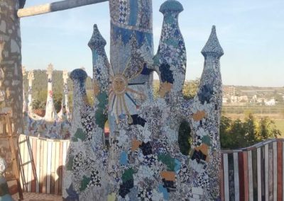 El responsable de la obra es Francisco González Grajera, que empezó la construcción en el año 1988, para complacer a su hija menor, que quería una casa de campo «distinta de las demás». Posee adornos colocados por el procedimiento conocido como el trencadís (trozos irregulares de cerámica partida adheridos a la superficie del muro) colocados en las escaleras, barandillas, cúpulas, terrazas y cuarto de baño. Francisco falleció en el año 2016 sin poder ver culminada su obra, que la continuarían sus hijos.