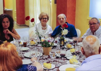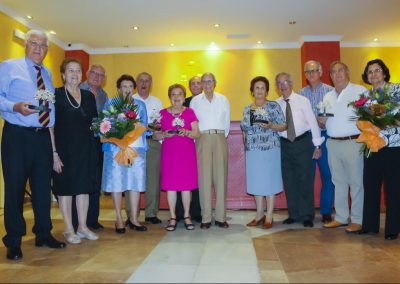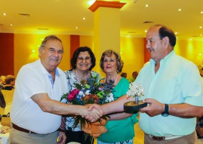 El viernes, 2 de Junio de 2017, ofrecimos un homenaje a nuestros socios octogenarios mediante la entrega de una encina de plata con la grabación de su nombre en recuerdo de este acto, así como un ramo de flores a su acompañante, homenaje que se les entregó durante la celebración de una comida a la que asistieron todos los socios que quisieron acompañarles en esta emotiva celebración.
