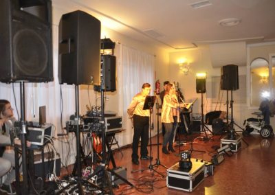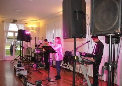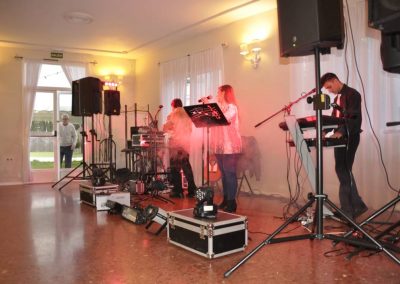 A todos los asistentes se les obsequió con un pequeño detalle y ya desde los postres La Orquesta “Evolución” nos deleitó a todos los asistentes dedicándonos unas bonitas canciones. Finalizando la fiesta con todo el personal animado en la pista de baile al son de la música.