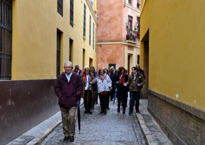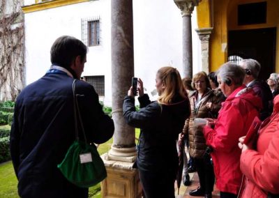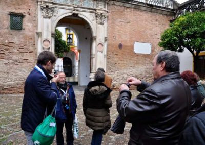 Al llegar a Sevilla, nos dirigimos a pie con dirección a la Casa de Pilatos acompañados de un guia local que nos fue dando toda clase de explicaciones sobre los lugares por donde íbamos pasando.