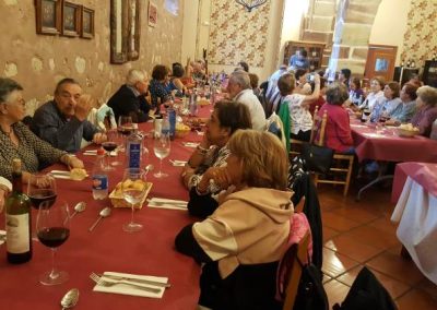 Salimos hacia la villa de Rubielos de Mora. El importante patrimonio de esta localidad ha propiciado que en 1980 la villa fuera declarada conjunto histórico-artístico y que, tres años después (1983), recibiera el premio «Europa Nostra », además de medallas de turismo del Gobierno de Aragón y un Premio Nacional del Ministerio de Transporte, Turismo y Comunicaciones. Desde 2013 forma parte de la Red de Municipios más bonitos de España. El pueblo fue elegido en diciembre de 2016 como «el pueblo más bueno y bello de España», resultando vencedor del programa «Luce tu pueblo» emitido por el canal Divinity de Mediaset. Visitamos el Castillo del S. XIV y el casco urbano de la villa. El castillo, de estilo gótico pero con sus exteriores de aires castrenses y severos. En una de sus cuatro torres, se encuentra la capilla y las cuatro fachadas son diferentes entre sí. En los salones, todavía quedan restos de puertas, ventanas y azulejos.