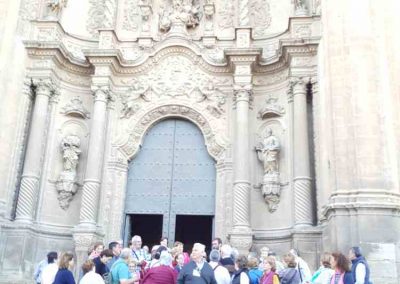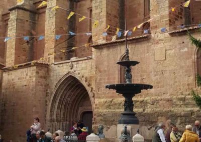 Por la tarde, visitamos Alcañiz , una de las principales urbes del reino aragonés. Su fascinante acervo histórico-artístico comienza en la Plaza de España, bello conjunto medieval donde se localizan la lonja y el edificio del ayuntamiento, obra maestra de la arquitectura renacentista. La vecina excolegiata de Santa María la Mayor, iniciada en 1736, es un templo de grandes dimensiones que combina trazos barrocos con influencias mudéjares. También perviven construcciones militares como el castillo de los Calatravos, en la loma de Pui Pinos, transformado en la actualidad en Parador de Turismo.